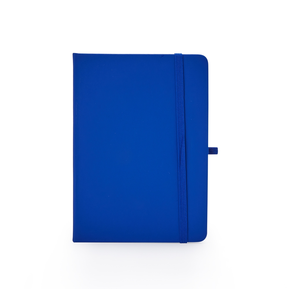Caderneta emborrachada com suporte para caneta, elástico para lacre e marcador de página em cetim, contém aproximadamente 80 folhas com pauta na cor branca.
