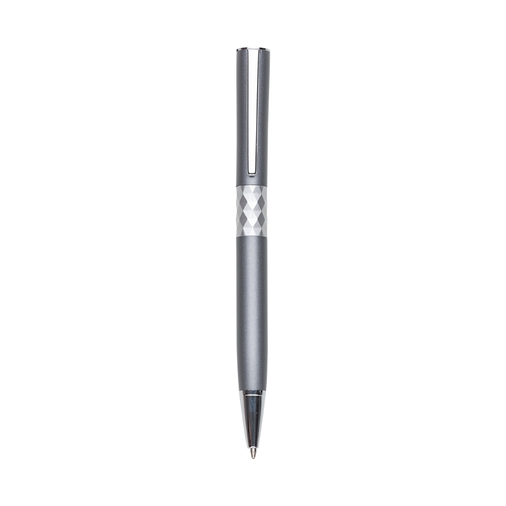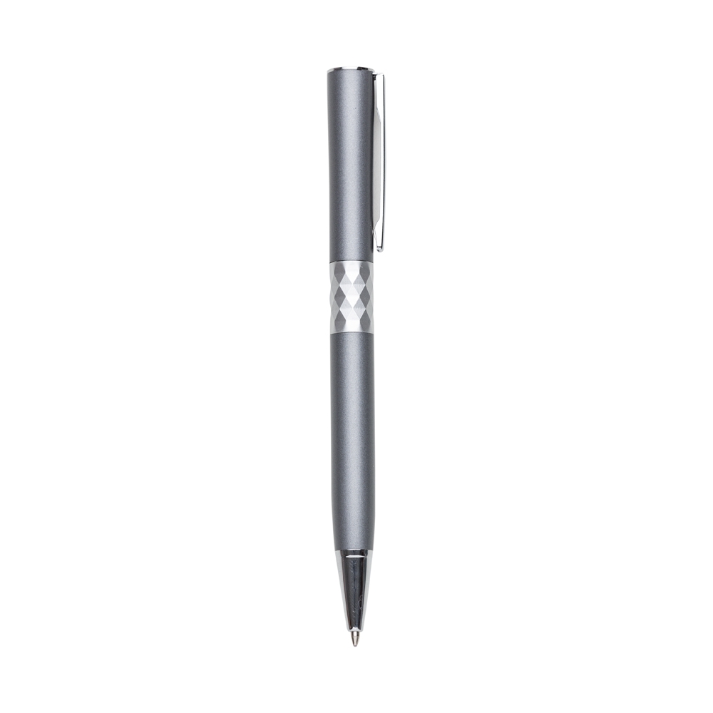 Caneta metálica com carga esferográfica azul e acionamento por rotação. OBS.: PEDIDO APENAS MÚLTIPLO DE 50 PEÇAS!