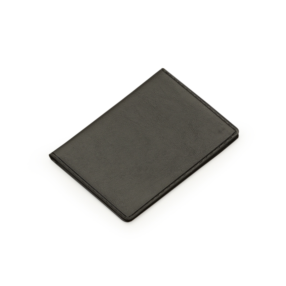 Carteira porta documento em couro sintético de frente e verso liso, parte interna com bolso plástico e duas divisórias para cartões. OBS.: PEDIDOS APENAS MÚLTIPLOS DE 50 PEÇAS!