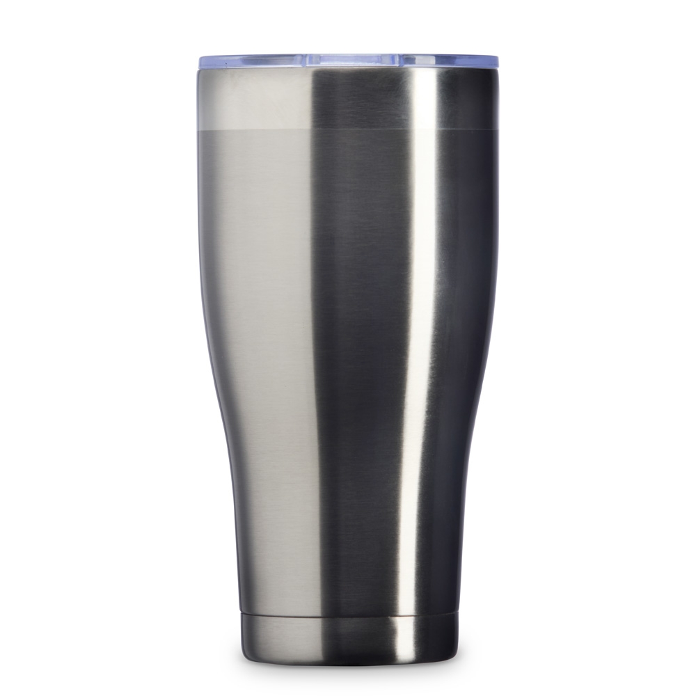 Copo térmico de inox com capacidade para 880 ml. Possui tampa com bocal e trava de segurança.