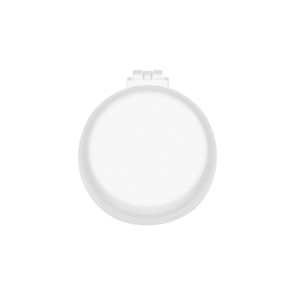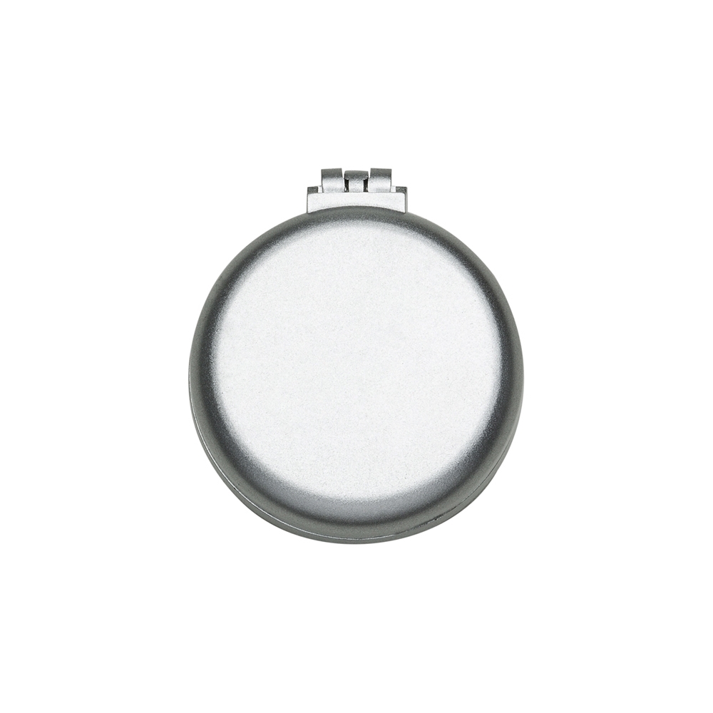 Escova com espelho redonda em plástico resistente. Parte superior plana e parte inferior emborracha com relevo, estando aberta a peça basta empurrar a parte emborrachada(lado de fora) para poder utilizar a escova.