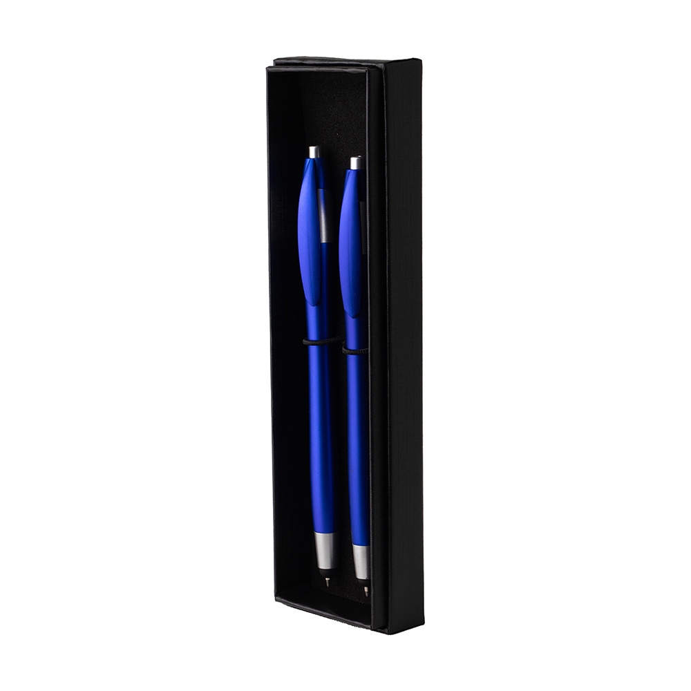 Estojo de papelão para duas canetas. Parte interna revestida com veludo e possui elástico para fixar as canetas. OBS.: NÃO ACOMPANHA CANETA. FOTO ILUSTRATIVA.