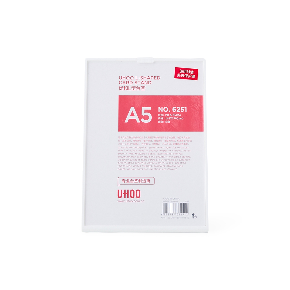 Expositor porta retrato A5 feito em poliestireno com placa acrílica.
