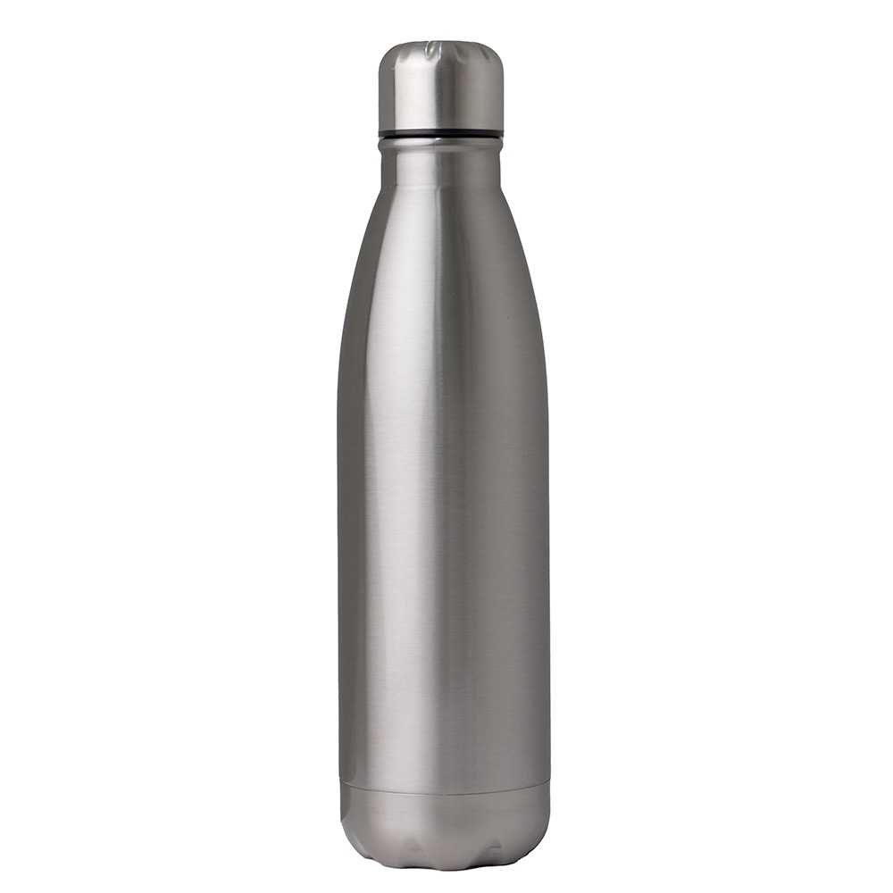 Garrafa 750ml em inox com tampa rosqueável e pintura brilhante. Obs.: Não é um modelo térmico.