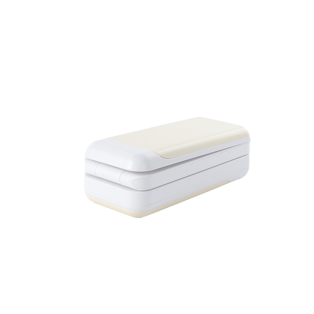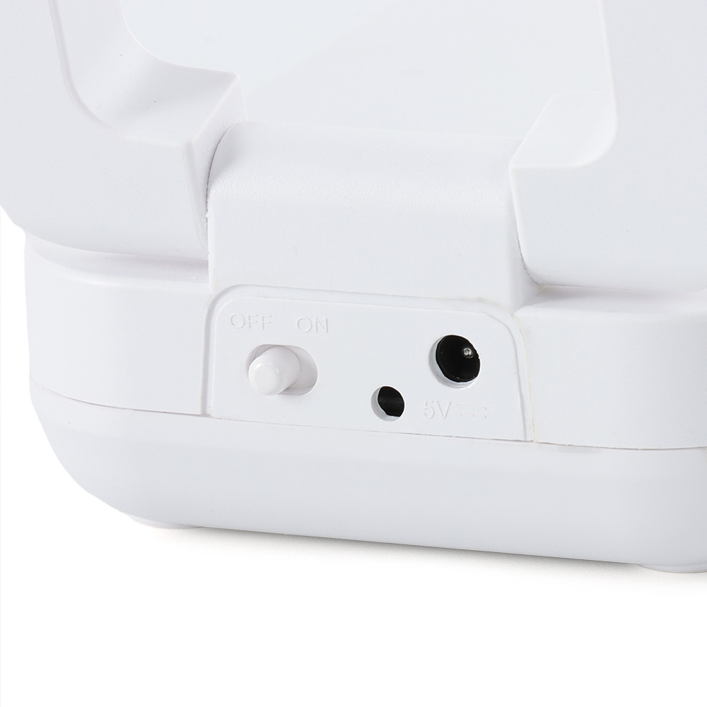 Luminária retrátil recarregável com 14 leds e funcionamento touch, material plástico. Contém três estágios de iluminação com regulagem de intensidade touch: luz fria (branca), luz quente (amarela) e luz mista (branca e amarela). Base com botão para ligar e desligar e área para encaixe na parte inferior. Acompanha uma bateria de lítio e cabo USB para carregamento.
