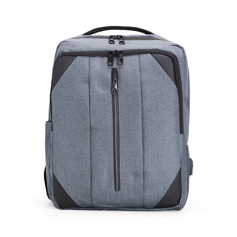Mochila de nylon 27 litros com três compartimentos, sendo o principal com bolso para notebook 15.6 polegadas. Com divisórias internas para acessórios, bolso lateral, alça para engate em malas de viagem e suporte externo usb.