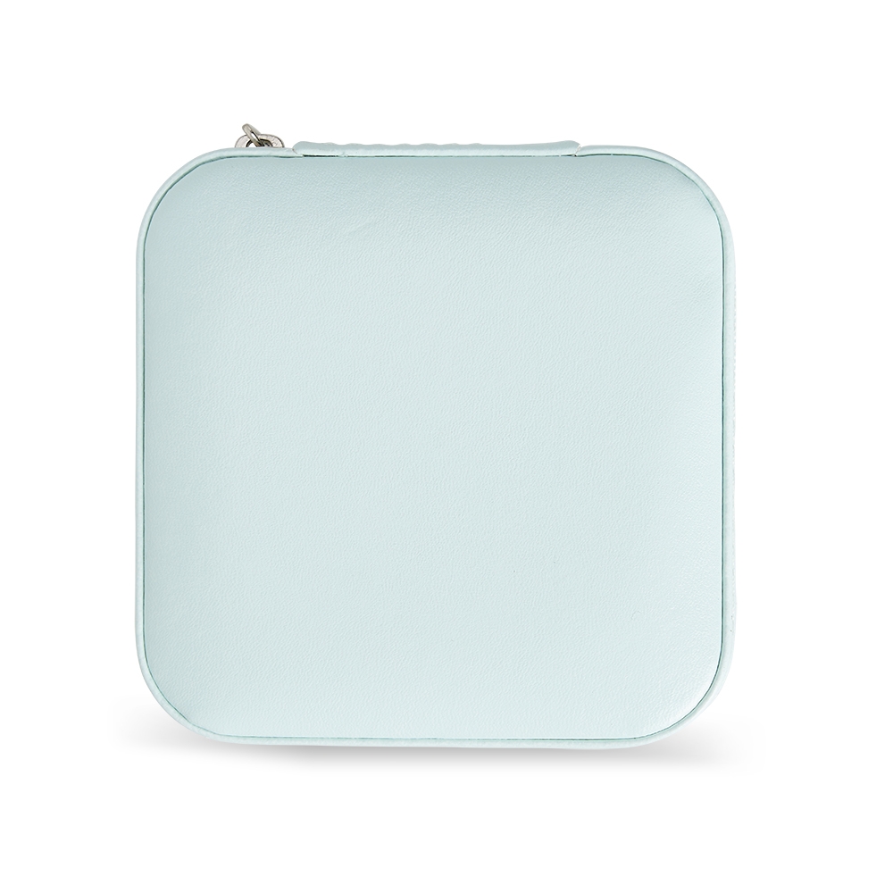 Porta joias de couro sintético com revestimento aveludado. Possui compartimentos internos para anéis, brincos, pulseiras e colares.