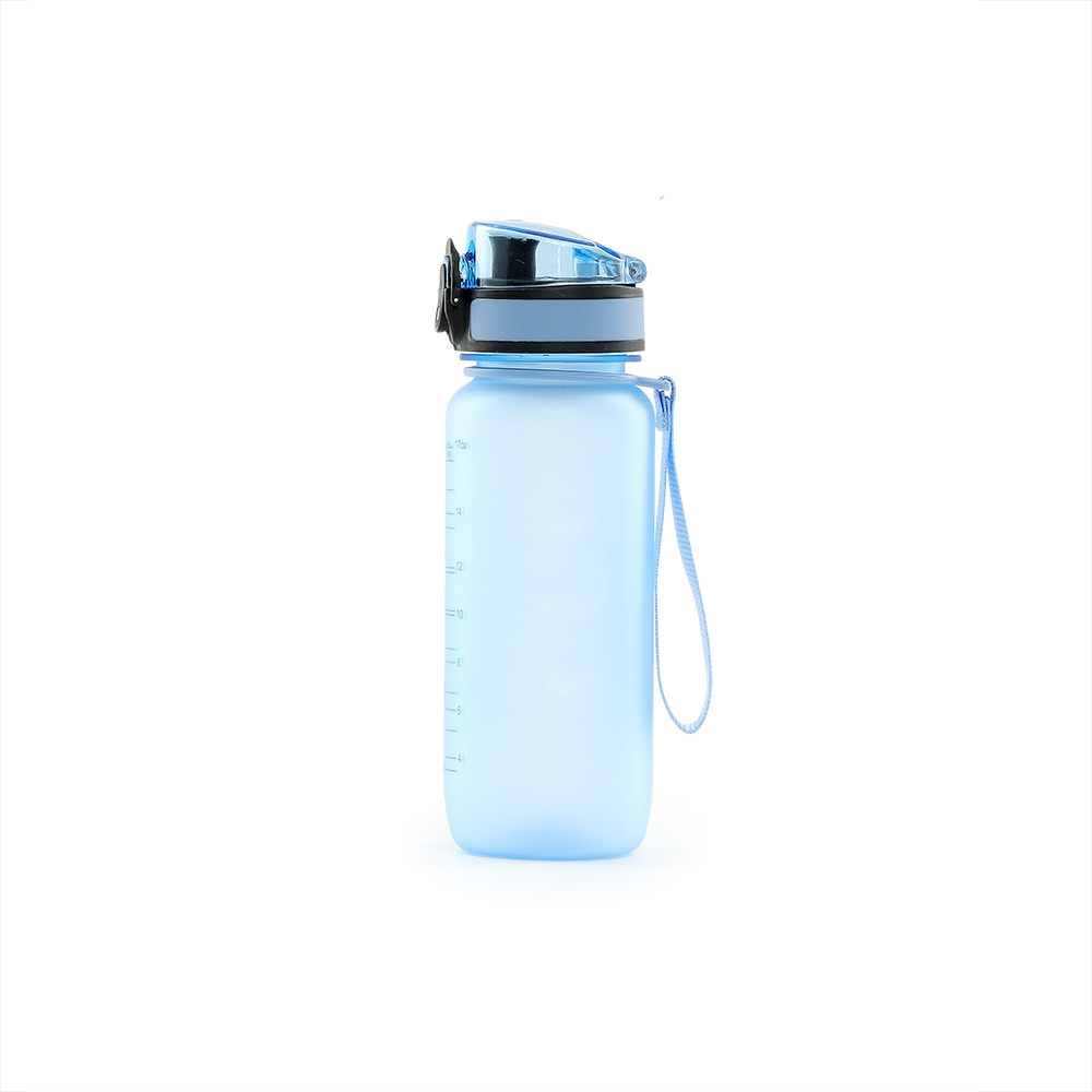 Squeeze plástico com capacidade de 550m. Possui tampa rosqueável protetora com trava de segurança e botão de acionamento. Squeeze com acabamento fosco, detalhes ondulado e alça de nylon para transporte.