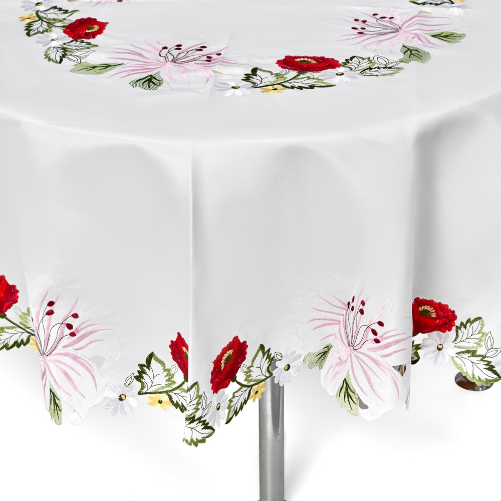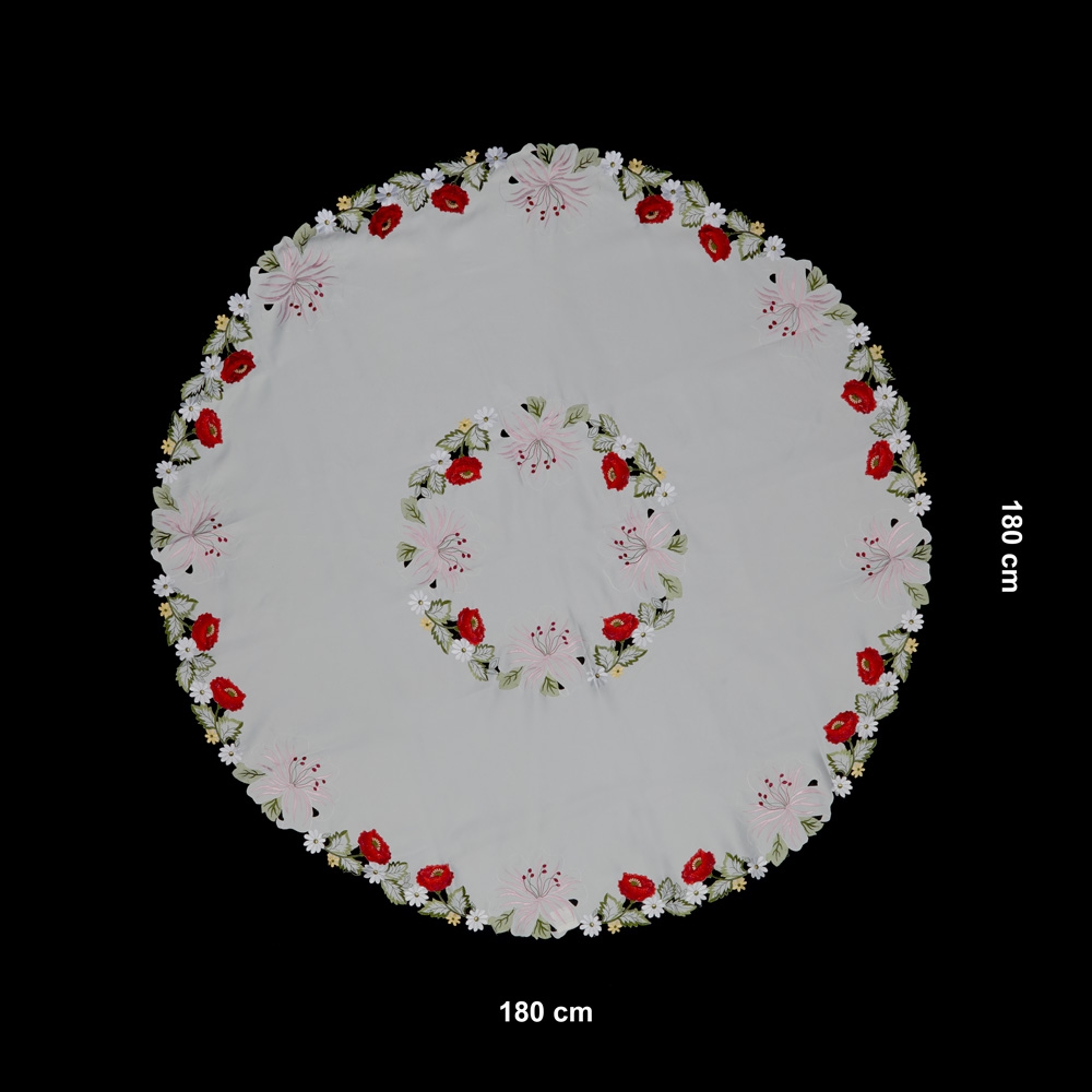 Toalha de Mesa Redonda em tecido 100% Poliéster.